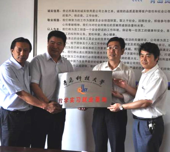 7月11日下午, 财神捕鱼 党总支书记梁树清、副院长李镇江赴青岛贵达工贸有限公司与该公司董事长邱维杭、总经理曾昭嘉签订了教学实习就业基地共建协议书,并举行了教学实习就业基地挂牌仪式…