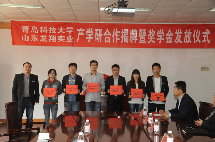 4月18日上午, 财神捕鱼 龙翔实业研发中心揭牌暨“龙翔实业”奖学金发放仪式在经管 财神捕鱼 楼313会议室举行。