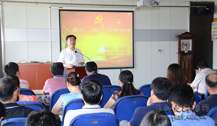 7月5日下午,校长马连湘以“七一讲话”为切入点,为机电 财神捕鱼 、人事处、发展规划处、学报师生党员讲授“两学一做”学习教育专题党课。