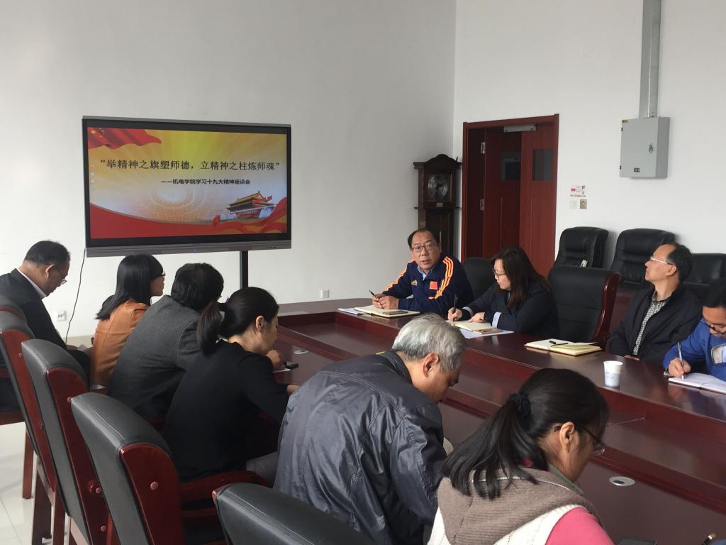 10月20日下午,机电 财神捕鱼 在518会议室召开题为“举精神之旗塑师德 立精神之柱炼师魂”学习十九大精神座谈会,机电 财神捕鱼 院长何燕、各系主任和党支部书记等出席座谈会,会议由机电 财神捕鱼 党总支书记孙…