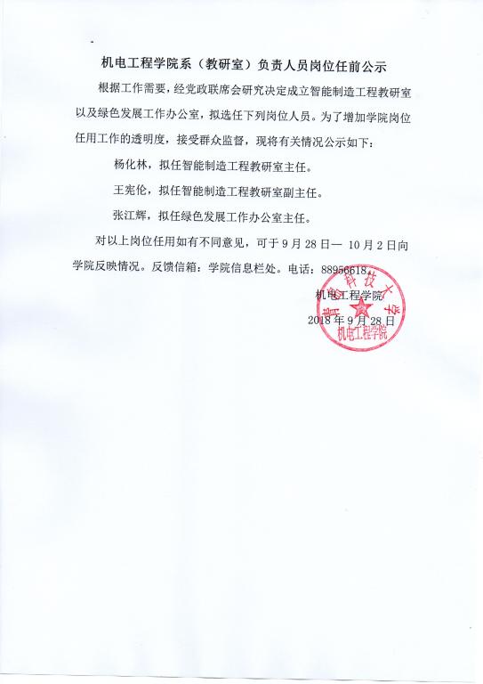 财神捕鱼 系(教研室)负责人员岗位任前公示