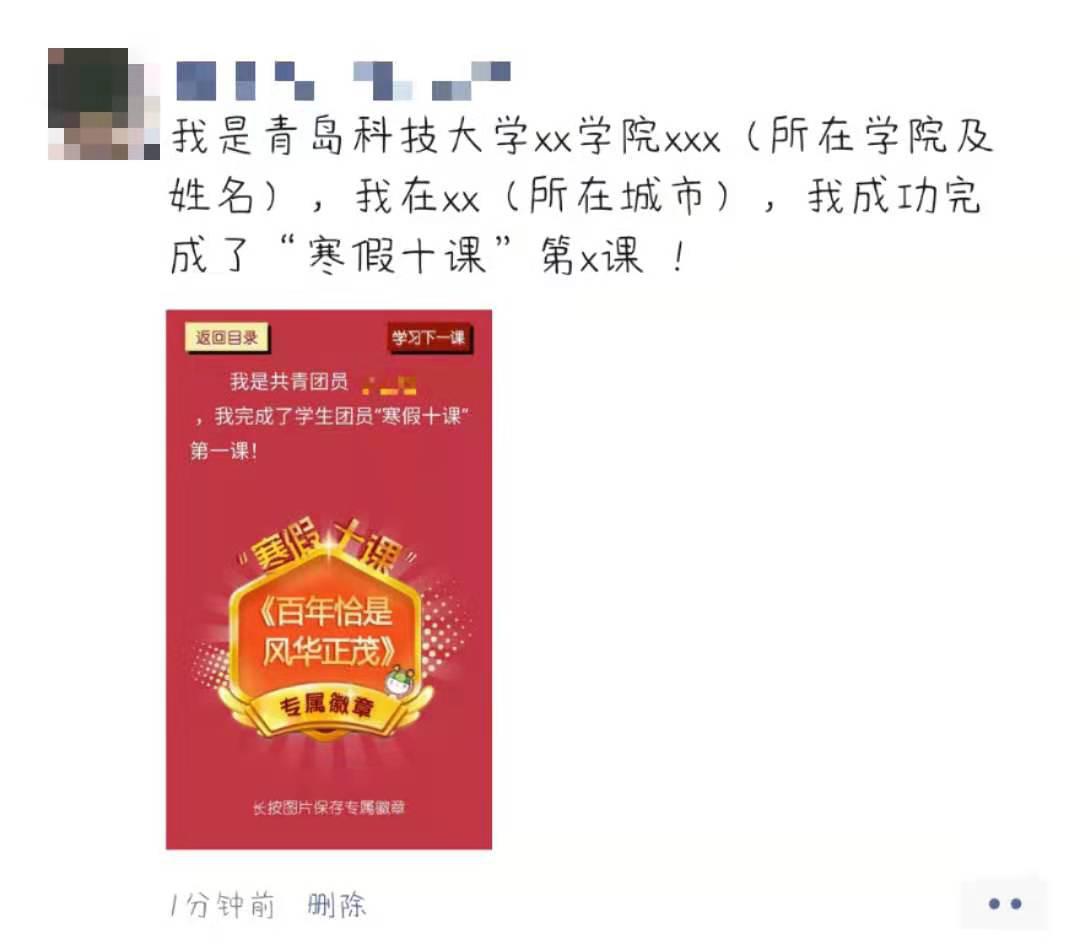及姓名),我在xx(所在城市),我成功完成了“寒假十课”第x课!”,详情请见下图