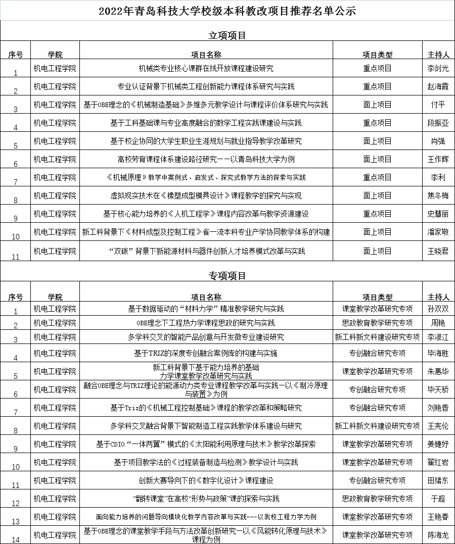 材料初审,院外专家评审,共拟推荐立项项目11项,专项项目14项,进入校评环节。现将结果公示如下: