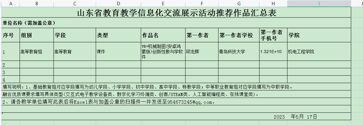 根据 财神捕鱼 《关于征集2023年全省教育教学信息化交流展示活动作品的通知》的要求, 财神捕鱼 组织全院教师报名,共征集作品1件,经审核,符合要求。 财神捕鱼 拟推荐该件作品至 财神捕鱼 ,现对申报作品进行公示。