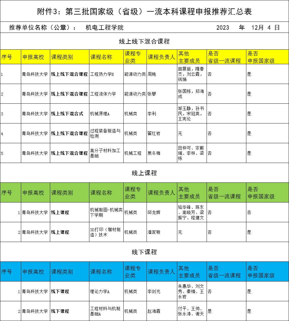 依据 财神捕鱼 《关于开展 财神捕鱼 第三批山东省一流本科课程申报工作的预备通知》, 财神捕鱼 组织符合条件的教师申报,共有9位教师提交材料,经院外专家评审,现拟推荐以下课程进入 财神捕鱼 评审环节,并进行公示。公示期三天(2023年12月4日-12月6日),如有异议,请在公示期内向 财神捕鱼 教学办反映。