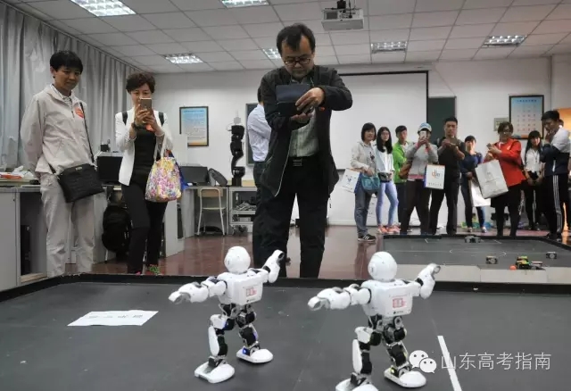 这只是门口“迎宾”的机器人,实验室里,会踢足球、会跳舞的机器人又引起大片考爸考妈们的逗留。