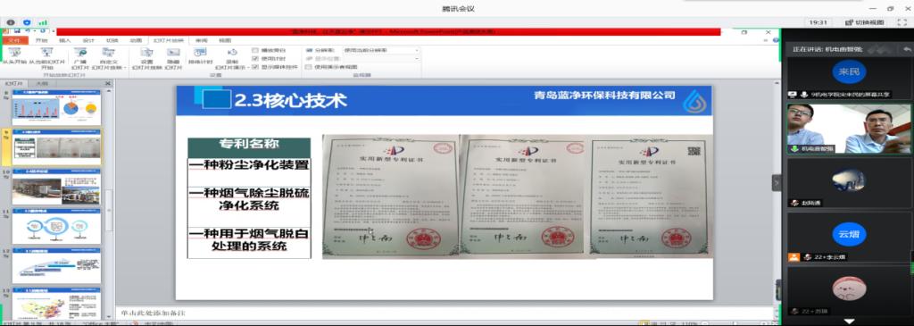 此次答辩会共有4支团队参加,分为三个环节,第一个环节为一分钟团队产品视频介绍,第二个环节为5分钟的PPT展示和讲解,最后一个环节是评委提问。答辩会上,各个参赛团队的选手通过共享屏幕向观众和评委老师详细地介绍自己团队的参赛方案。各环节结束后,评委老师们对选手的表现进行了点评。