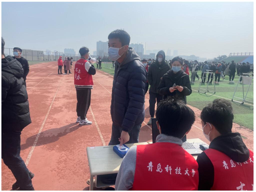 学生到达集合地点,系统登记、人员引导、列队待检等各个环节都高效有序。学生排队打卡的场面成为了一道崭新的风景线,信息统计志愿者张致远说:“通过使用打卡方式,我们现场组织更有条理了,系统登记以后当天到场人员情况一目了然。”