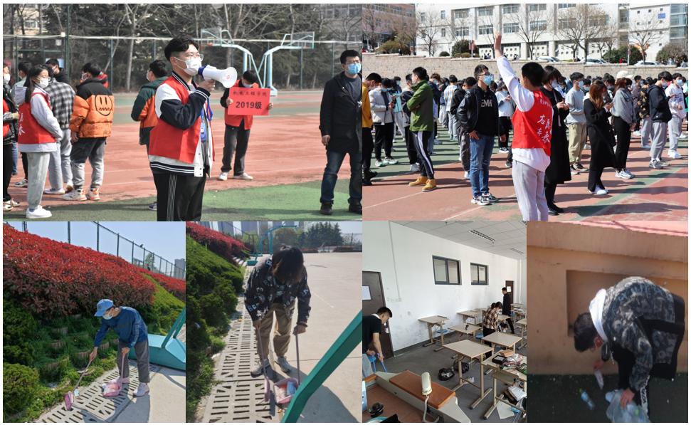 组织班级、青年志愿者开展劳动实践教育活动,在宿舍、操场、食堂、教学楼等分组进行卫生志愿清理,营造了整洁有序的校园环境,并在此过程中进一步培养劳动精神,强化学生的社会责任感。机械实验211班宋博生同学说:“这次校园劳动活动,用一句话概括就是‘累并快乐着’。在劳动中,我们体会到了保洁人员的辛苦与不易,更感受到维护良好的校园环境是我们每个人义不容辞的责任。”