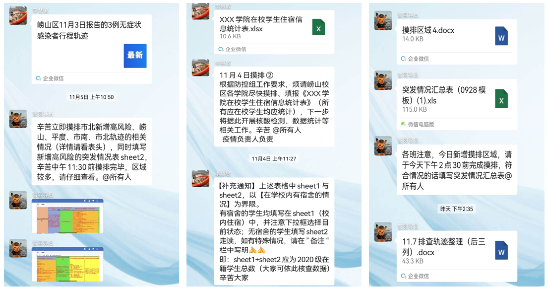 辅导员以校为家,逆向前行,全天候值守宿舍楼,身处“战”疫第一线。他们担当作为,解决大家的生活需求;他们服务到位,确保核酸检测不落一人,保障学生的安全,守住疫情防控底线;他们不辞辛劳、坚守阵地,与学生志愿者一道,协助餐饮服务人员打包装箱,搬运分发到每一个宿舍门口,协助物资发放人员及时将口罩、酒精等抗疫物资送到每一位同学手中。