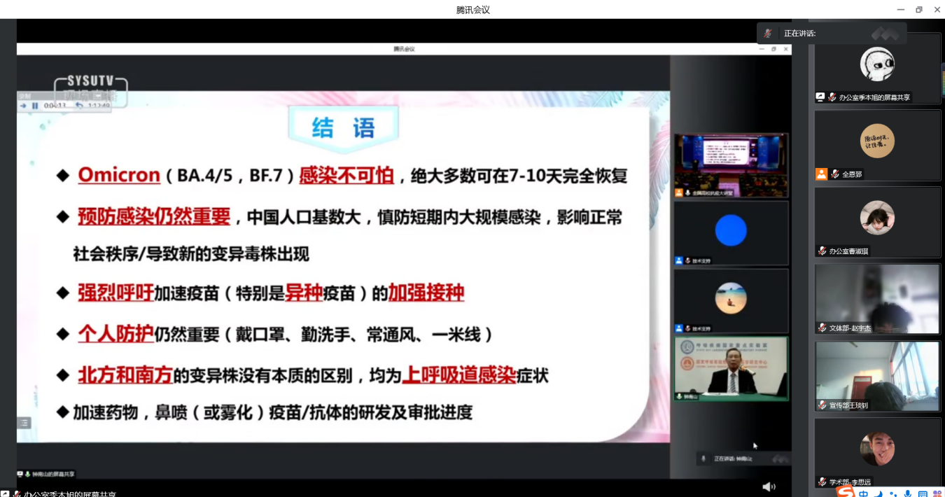学生会线上组织观看钟南山院士主讲的全国高校抗疫大讲堂“新冠(Omicron)疫情动态及应对”的讲座。