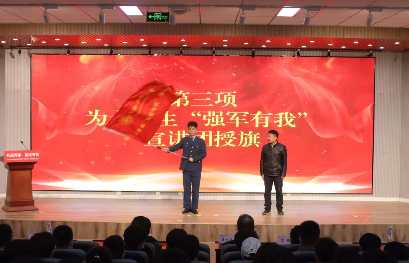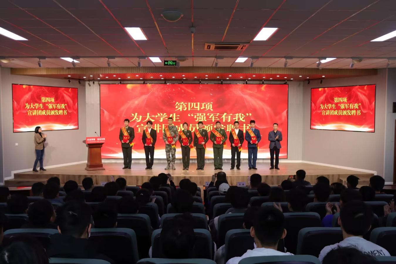 党委副书记肖强为大学生“强军有我”宣讲团成员颁发聘书、绶带。