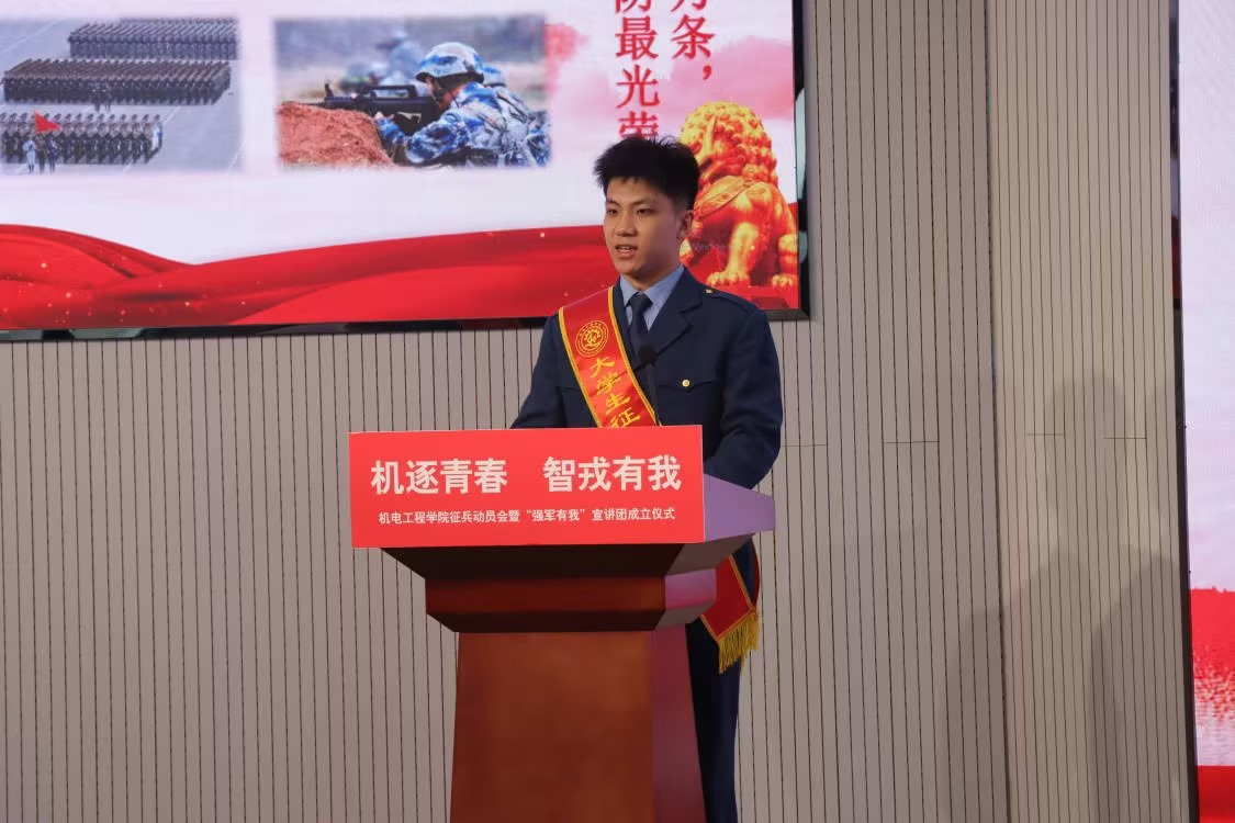 2018年武警退役士兵、硕士研究生机械224班庄春雨,2022年空军退役士兵、成型中韩221班刘易,2022年陆军退役士兵、机械中韩214班梁昊,分别以《参军永无悔,圆梦青科大》《永远跟党走,建功献国防》《参军报国,不负韶华》为题进行了宣讲,从锻炼百折不挠的意志、培养过硬的素质、收获真挚的战友情谊等方面勉励同学们积极投身军营,发挥所学专业知识特长,用青春筑就“强军梦”。