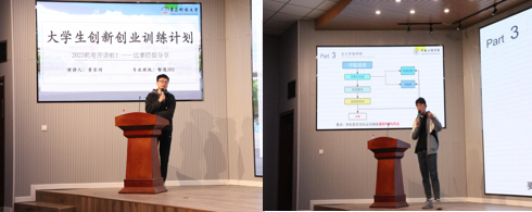 科创学科竞赛服务体系,黄家琦从赛前准备、如何编写大创申报书、大创怎样结题等方面介绍了大学生创新创业训练计划赛事。另外两位同学还结合各自的科创历程,为同学们分享了诸多科创经验,鼓励同学们在大学期间努力学习科研知识,踊跃参加科技创新比赛,提高自身实践能力。