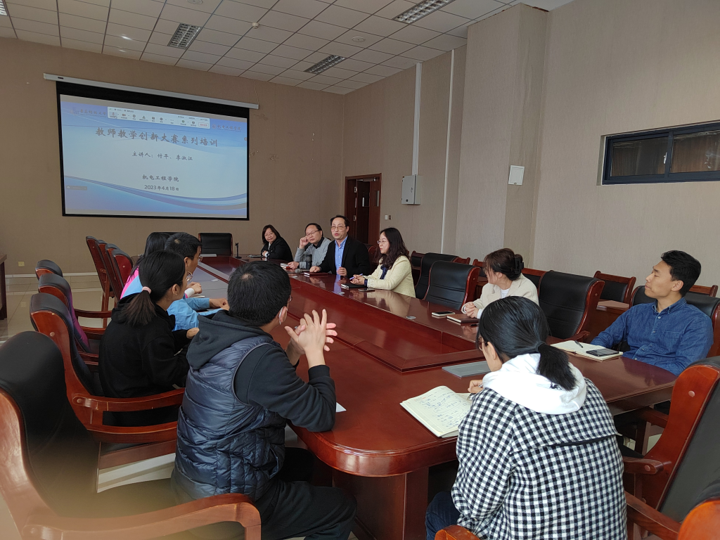 邀请省赛二等奖获得者付平教授和校赛一等奖获得者李淑江副教授分别做了《关于教学创新大赛评审指标解读》和《如何备赛教学创新大赛创新成果汇报的体会分享》的报告。本次报告会线上线下同步进行,校教师发展中心副主任段晓茜亲临现场指导,全校教师100余人通过腾讯会议同步参会。