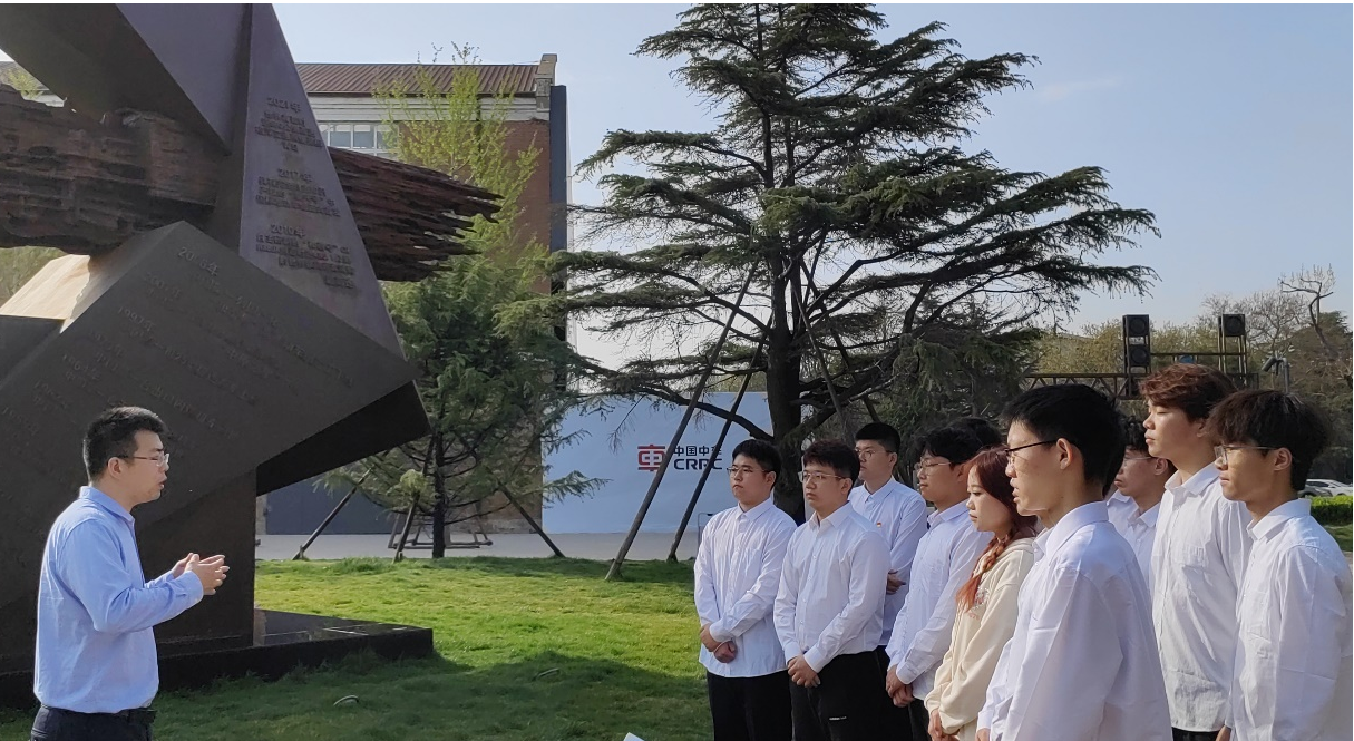 杜康老师首先带领学生代表们参观了机车公园,深入了解了机车的发展历程和发展现状,感悟了在中国共产党领导下日益蓬勃发展的中国科技。观览结束后,一行人在机车雕塑前展开师生共读一本书活动。在杜康老师的带领下,学生代表们神情严肃,举止端庄,怀着崇敬的心情诵读了《论中国共产党历史》选段。