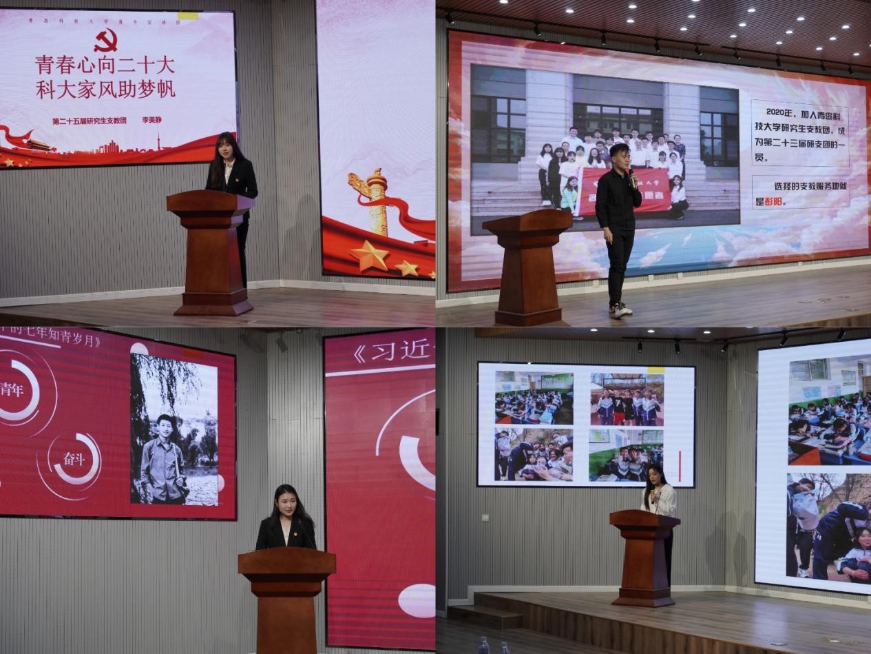 青年宣讲团成员,结合党的二十大精神讲述青春故事。宣讲团成员李美静、马庆万、孙笑琰、姜秋雨为学生骨干分享成长经验,用“青言青语”激励机电学子要坚定信心、奋勇前进,争当伟大理想的追梦人,争做伟大事业的生力军,为 财神捕鱼