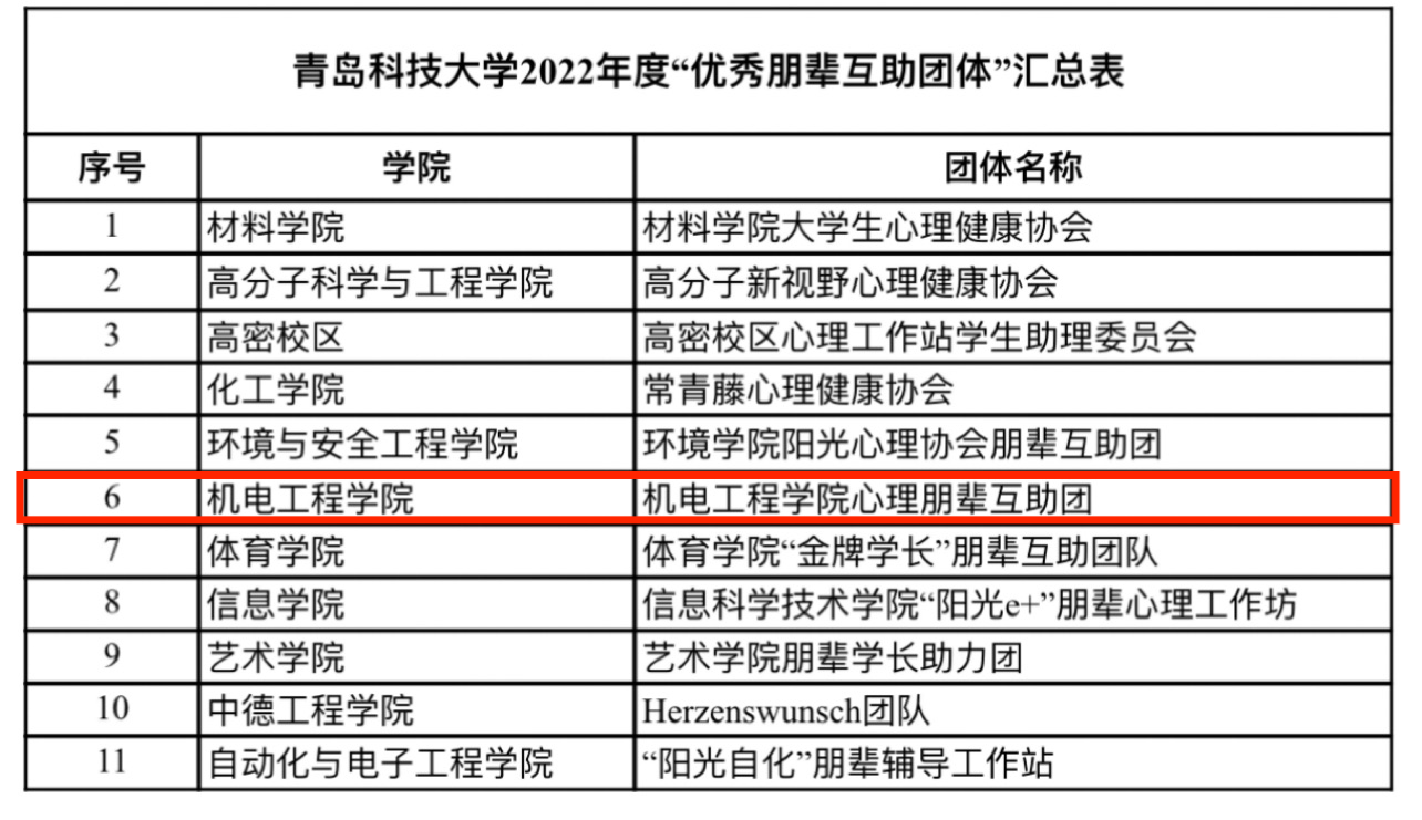 机械191班洪缨、装控193班吕欣雨、机械实验201班马腾霄、船舶202班陈莹莹、新能源211班成嘉怡、智造221班杜晓雨获评“优秀心理委员”。