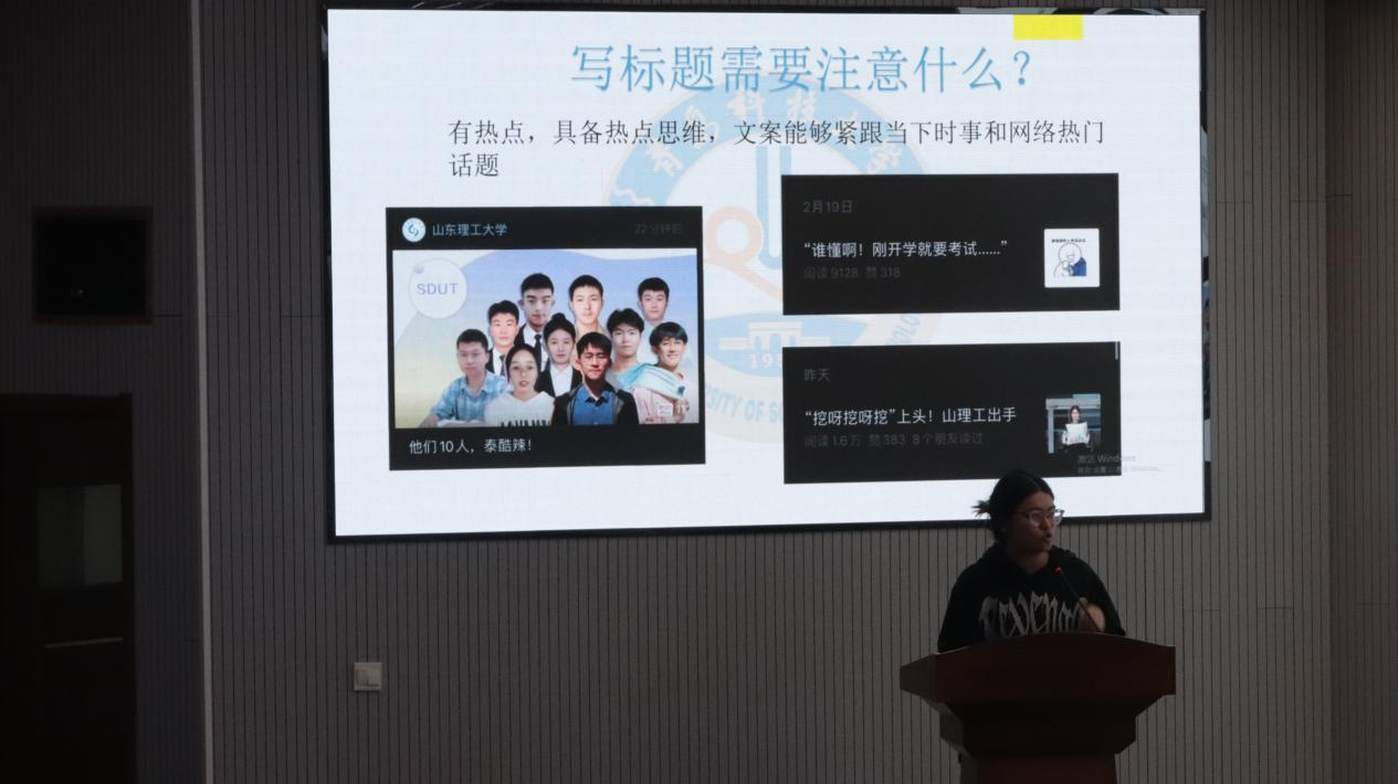 融媒体中心闫育铭首先介绍了新闻宣传的重要性。随后重点讲解了宣传报道的结构及撰写技巧,从新闻写作、账号定位、标题选取技巧及内容选题等方面阐述了宣传报道的特点和撰写稿件的基本知识。
