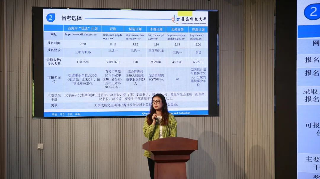 宗萌,已成功“上岸”西海岸优选计划选调生,建议同学们选岗时要主动挖掘各类资源,重视信息收集整理,合理安排学习时间。