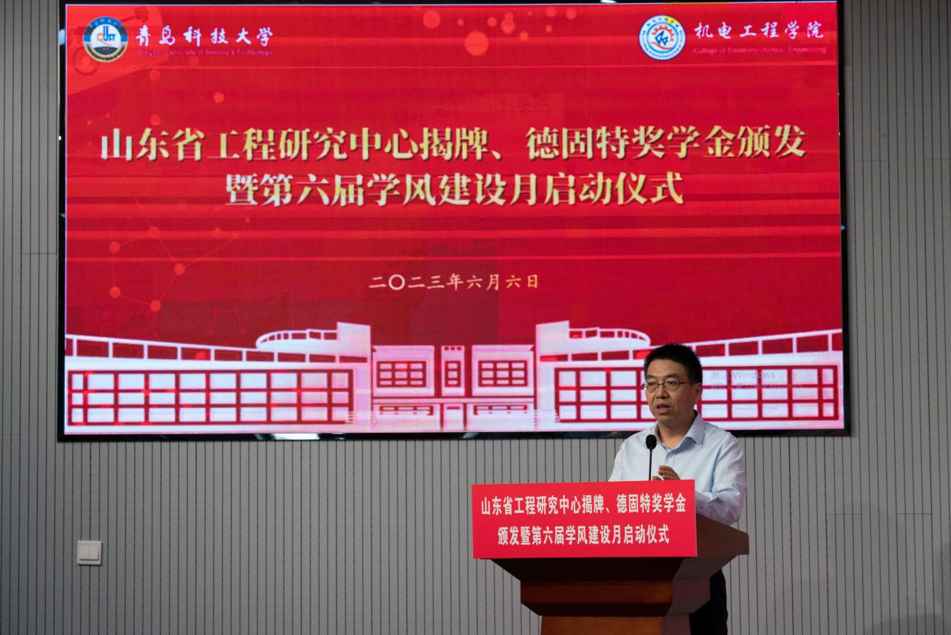 副院长张卫锋宣读2023年德固特奖学金获得者名单,此次评选了德固特学业优秀奖学金30人,德固特科技创新奖学金20人,每人奖励2000元,共计10万元。