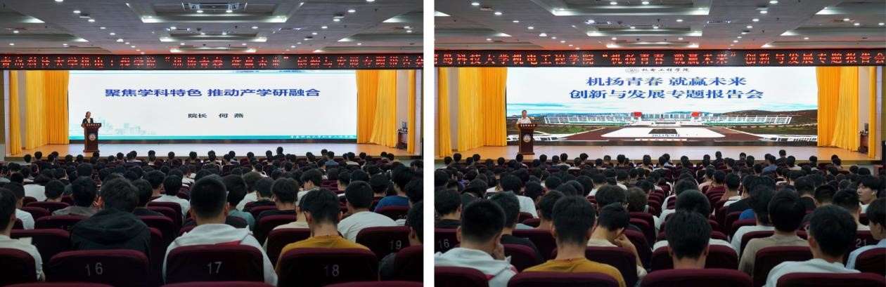“机扬青春 就赢未来”创新与发展专题报告会在崂山校区第二报告厅举办。报告会由机电 财神捕鱼