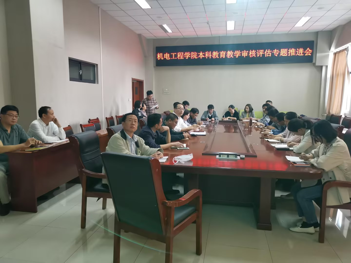 在518会议室召开了本科教育教学审核评估专题推进会,副院长李剑光主持,院长何燕,各系室主任、实验平台(中心)主任参加。