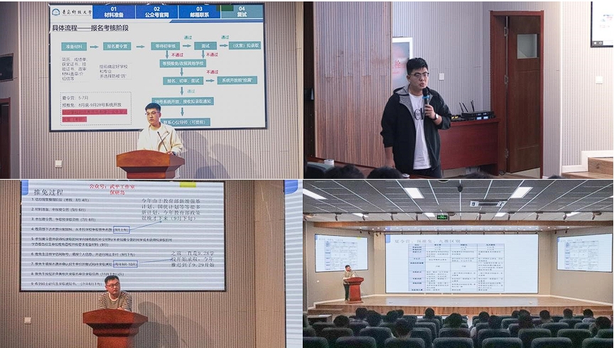 、机械202班王怀璋向同学们分享了自己大三时的保研规划,并对保研择校,夏令营准备等工作进行分享。推免至山东大学、机械中韩201班全恩郅对专业学习、科研竞赛、社会实践、价值追求四个方面进行总结,同时希望“保研边缘人”也应抓住最后机遇,通过不断努力达到自己的预期。