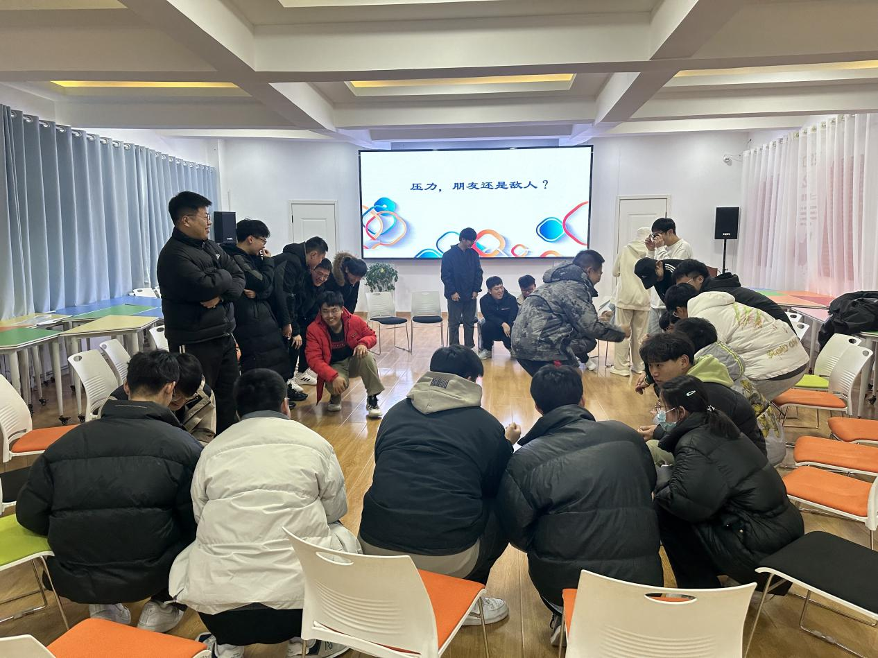 第二阶段,刘璐老师带领同学们开展一系列富有趣味的团队游戏,同学们积极参与,高度配合。欢声笑语中,同学们的备考压力和焦虑情绪得以纾解。