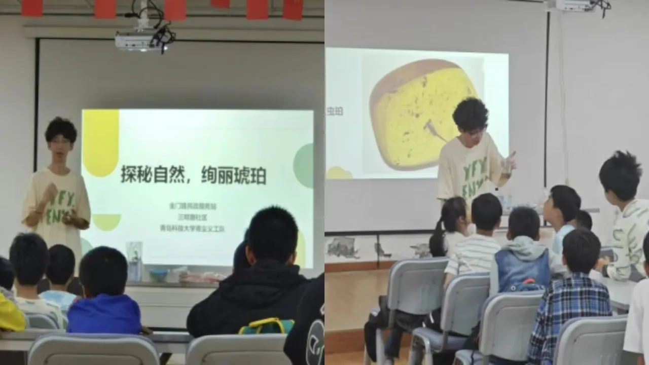 5月26日,青尘义工队在湛山街道综治中心举办“探秘自然,绚丽琥珀”科普讲堂。志愿者向孩子们深入浅出地讲解了琥珀的形成过程、种类和价值,并通过幻灯片展示各式各样精美琥珀的图片,孩子们直观地感受到琥珀的价值与美丽,体会到大自然的魅力与乐趣。此次科普讲堂让孩子们在轻松愉快的氛围中对琥珀有了深刻的了解,感受了大自然的奥秘,相信在未来的日子里,这些孩子能以更加强烈的好奇心与热情探秘自然与科学。
