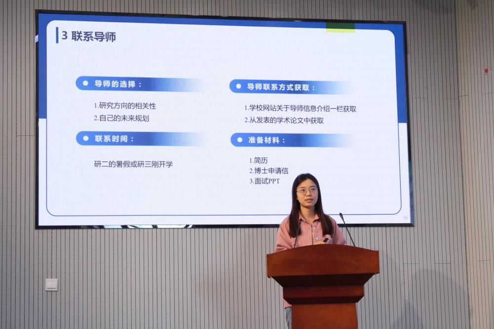 选择、联系导师以及面试准备四个方面分享了她的申博经验,并建议同学们要提前做好科研规划、平时积极参与学术交流,时刻保持对科研的热情,不断提升自己的科研能力。