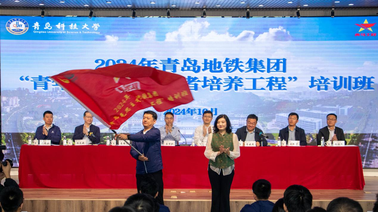 党委书记任允晓介绍了培训安排,课程涵盖专题讲座、业务提升、互动体验、分组交流等多个富有吸引力的模块,与青马工程的培养目标高度契合。青岛团市委组织部部长李耀贤为学员代表齐康授旗。青岛地铁李村站区长齐康作为学员代表进行表态发言。