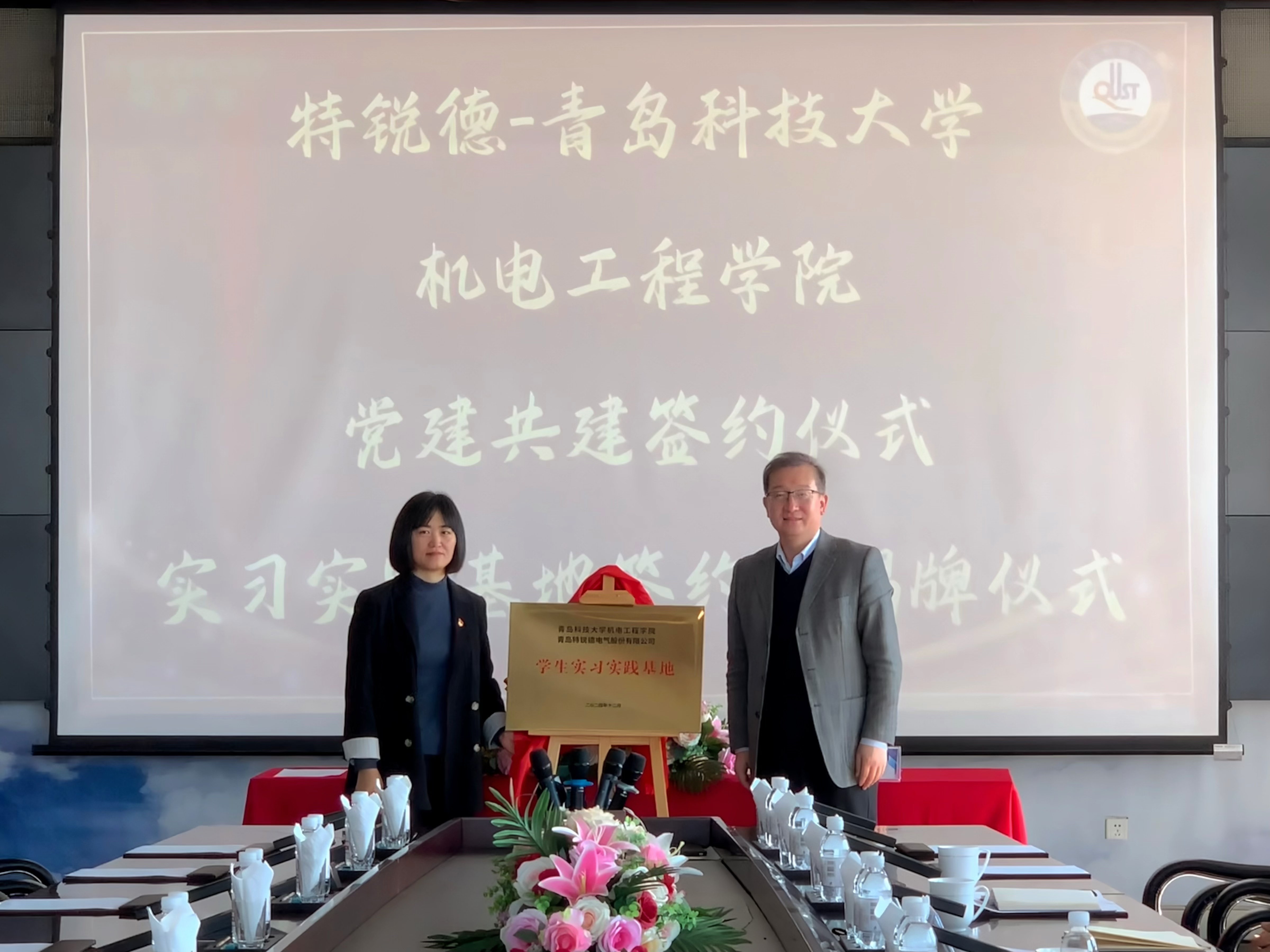 的人才培养和科学研究工作中。双方就促进学生的全面成长、实现高质量充分就业等展开深入的交流。会上,任允晓与韩增雪共同签署了校企党建共建协议和学生实习实践基地协议,并为学生实习实践基地揭牌。