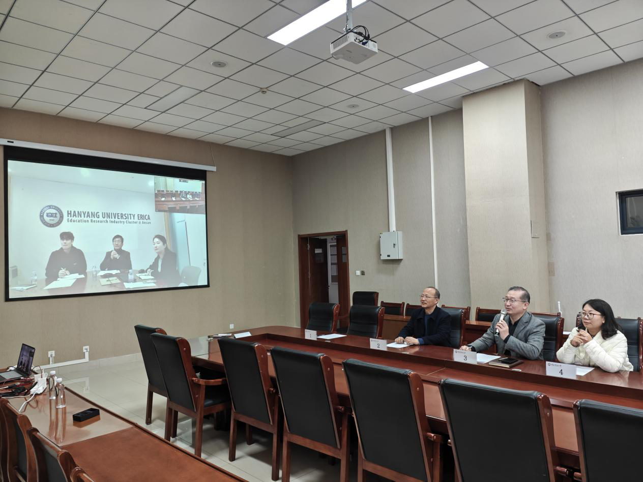 根据汉阳大学定制的2023级中韩合作办学出国选拔通知要求,经过个人申请、资料提交、资格审核、汉阳大学初选,按照总体成绩排序择优选拔,共确定41人免面试录取,25人获取面试资格。依据汉阳大学发布的面试资格名单,参与面试学生5人一组,共5组,开展公开、有序的线上答辩,学生用韩语进行自我介绍及去韩国留学的理由,Keun Ryu就学生韩语考级成绩等方面提问。