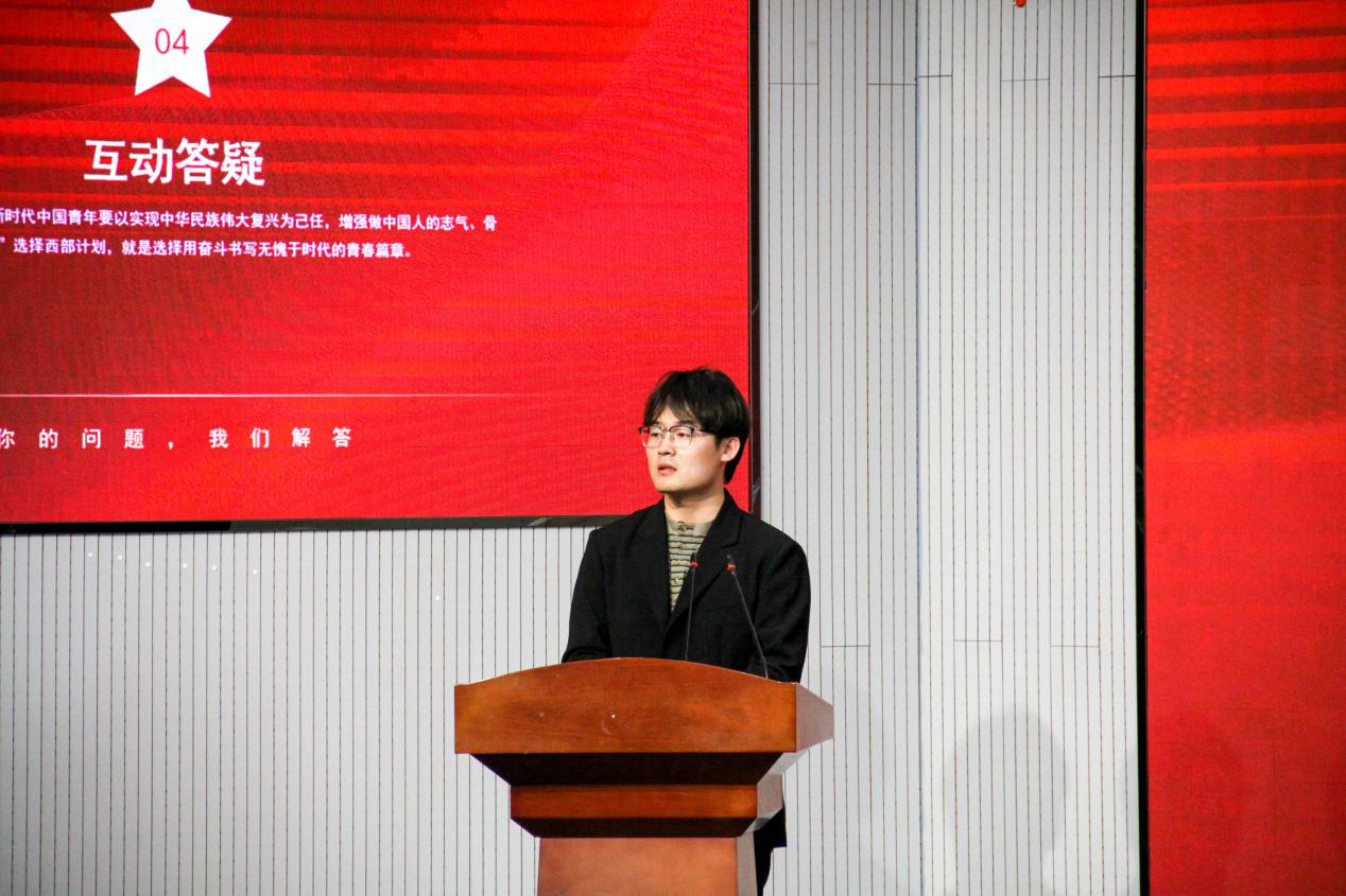 团委书记兼学工办主任逄柏鹏详细介绍了西部计划的具体情况,包括报名流程、服务内容、政策支持等信息。 财神捕鱼