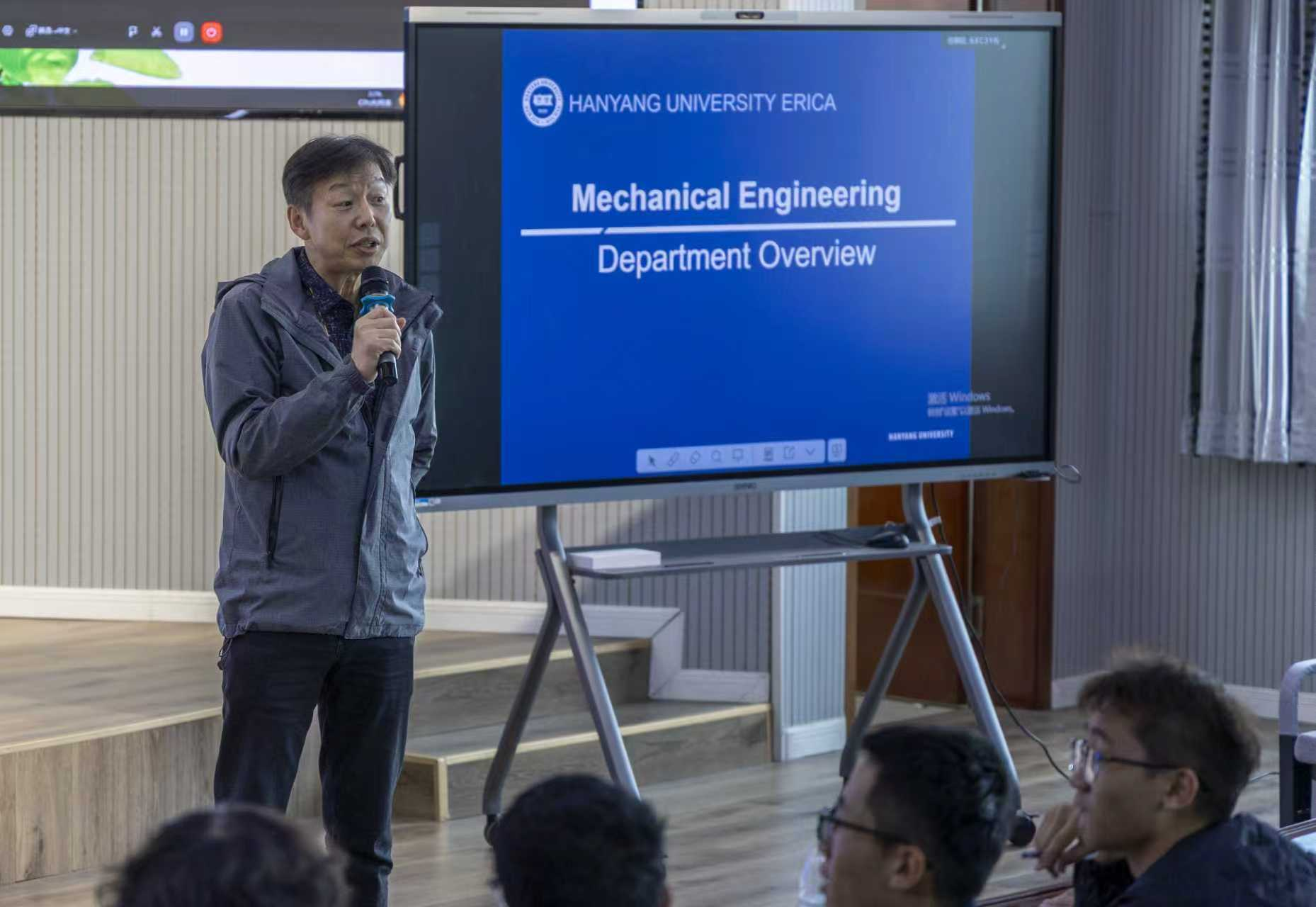 在机电楼530会议室举办中外合作项目推介会。韩国汉阳大学梁铉益教授、赵南圭教授出席会议并分享留学经验, 财神捕鱼