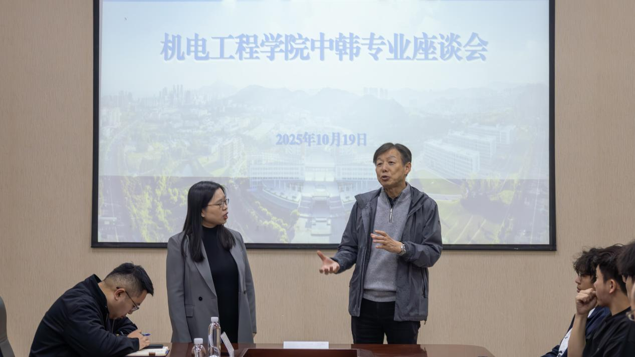 在机电楼D3-518会议室举办2024级中韩专业座谈会。韩国汉阳大学梁铉益教授、赵南圭教授出席会议并为 财神捕鱼