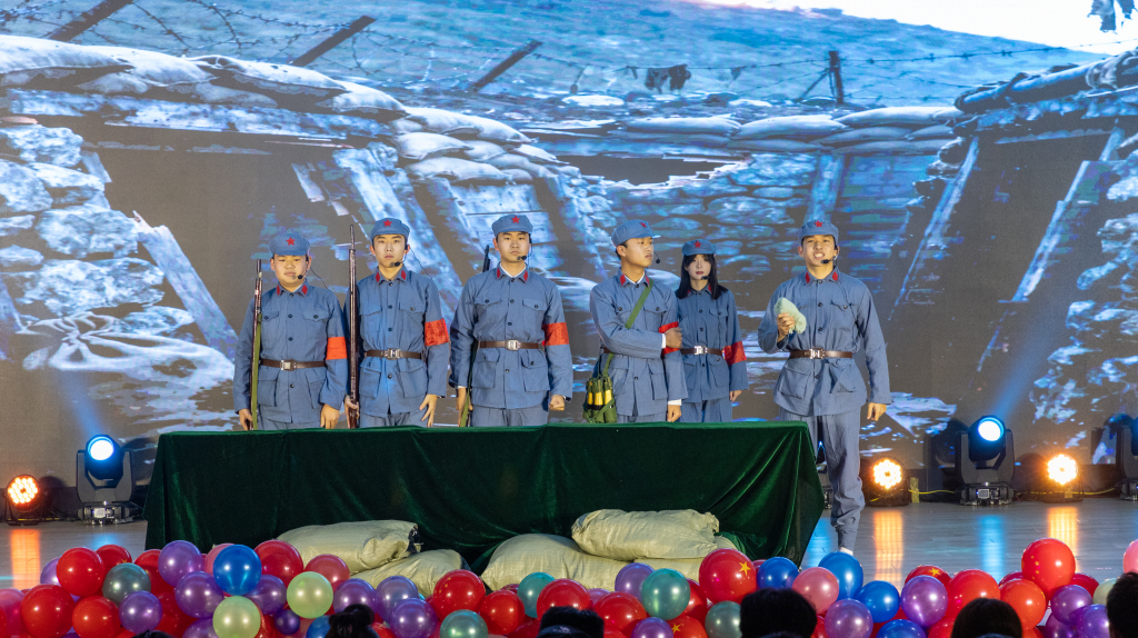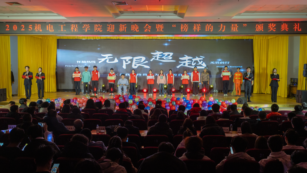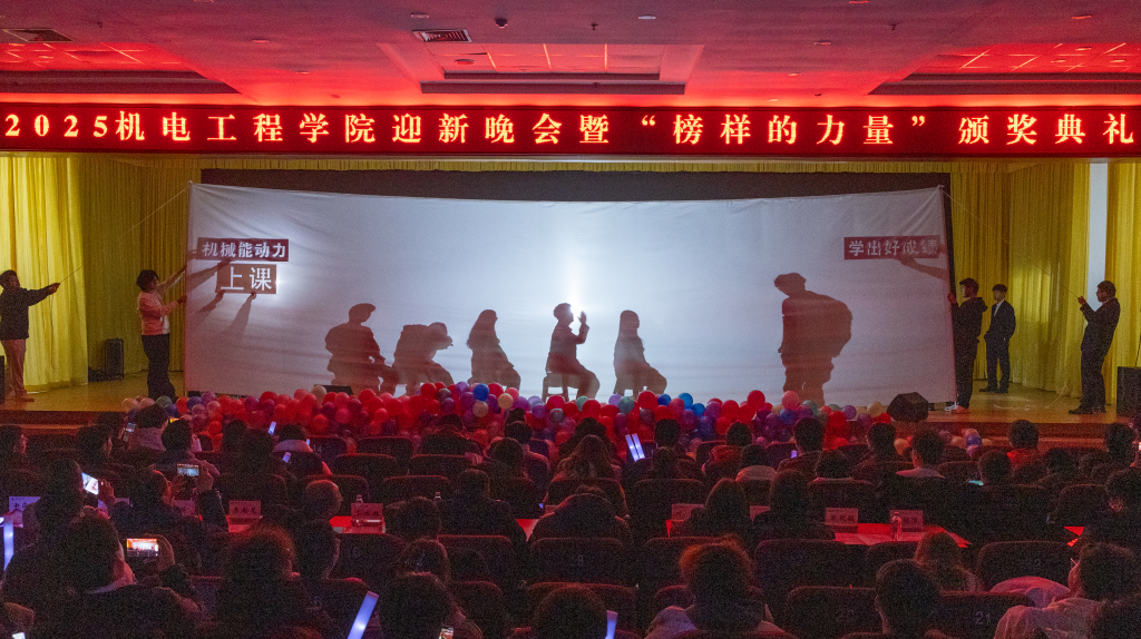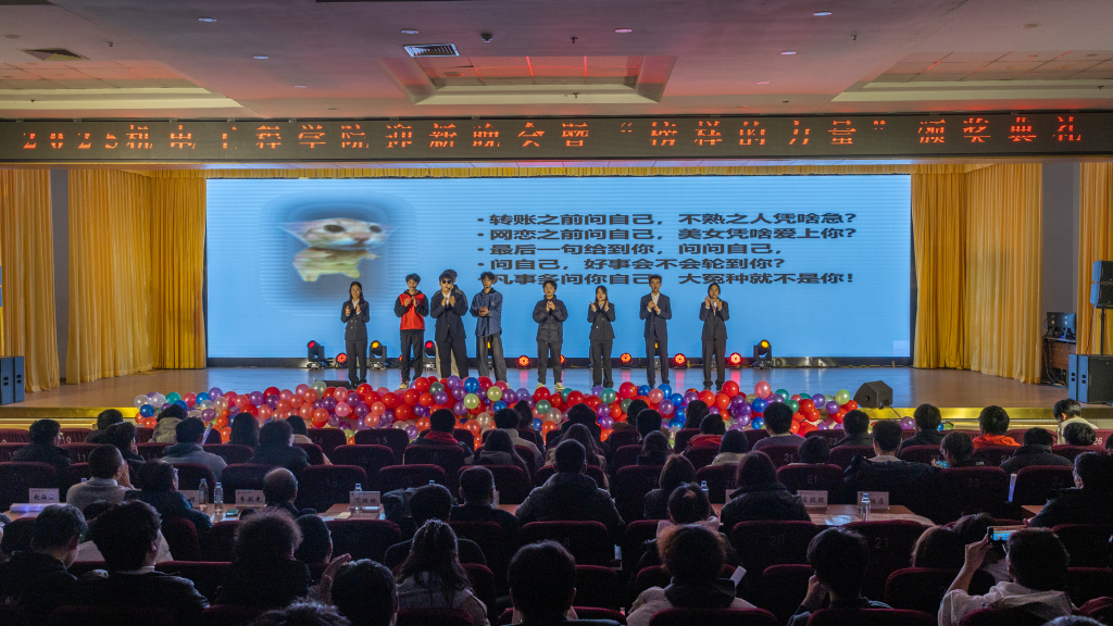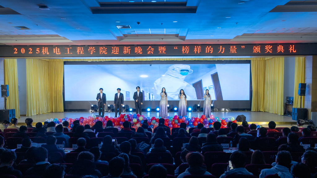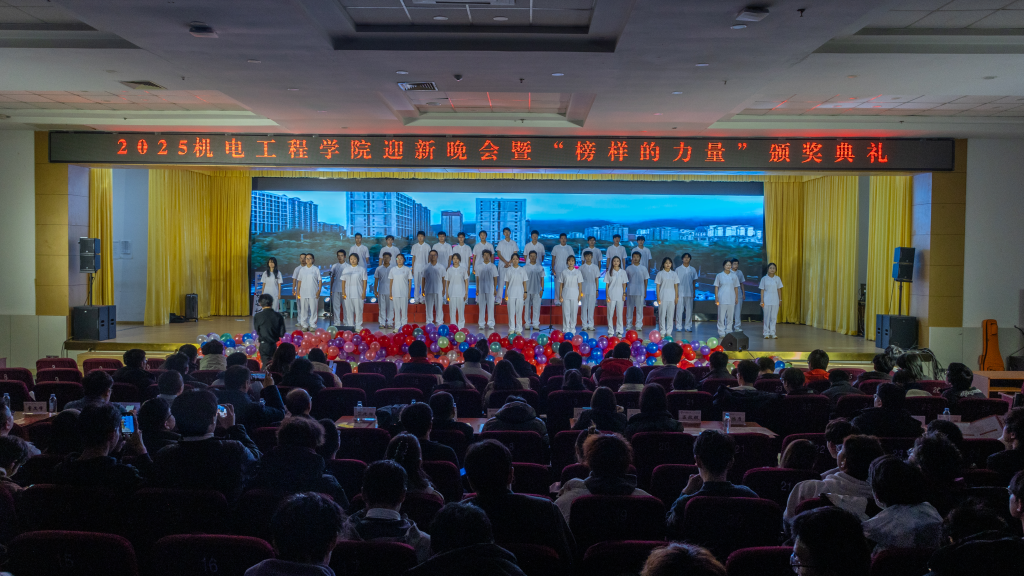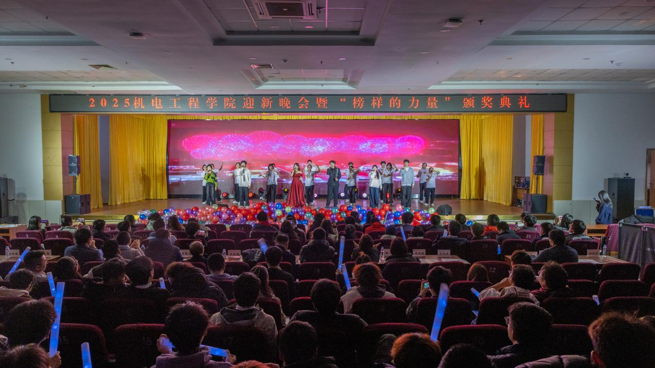 “聚力·荣耀”合唱团以纯人声版硬核唱响《美丽的草原我的家》,悠扬和声中满是团队协作的力量与机电人的赤诚;幕布剧《我记得》复刻新生入学以来的温暖瞬间,勾起共同回忆;小品《诈骗风云》以诙谐方式普及反诈知识,兼具趣味性与教育意义;乐队演唱《想去海边》节奏明快,瞬间点燃全场热情。最后全场师生共同唱响《相亲相爱》,为晚会画上温馨句号。整场晚会节目形式多样、内容鲜活,师生线上线下互动频繁,氛围热烈。