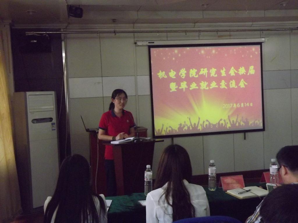 做的贡献。随后由李剑光老师宣读第十二届研究生会人员名单,并且和王作辉老师一起为他们颁发聘书。新一届研究生会主席胡顺晓表示了对上一届研究生会的感谢和今后研究生会的工作展望。最后王伟书记为本次大会做总结,既对十一届研究生会表示感谢,又对新一届研究生会提出更高的要求,以科研为基础,以创新为灵魂,创建新一届研究生会崭新的面貌。
