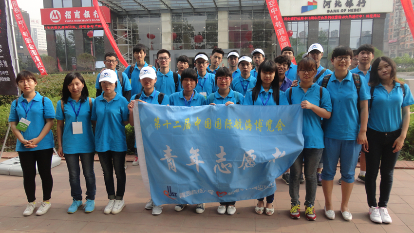 学生中选拔30名志愿者,经过集中培训后投入到此次盛会的服务工作中去,志愿者们顶着炎炎烈日,负责接待、维护、门禁、导引等工作,以热情的良好形象为前来参观的游客提供引导、维护现场秩序等方便快捷的志愿服务。在开幕式第一天,大量游客进场参观,志愿者们以饱满的热情投入到志愿工作中,热情、耐心的为海内外游客提供引导服务,并确保博览会井然有序地进行下去。航博会的最后一天,面对暴雨天气,骤降的气温, 财神捕鱼