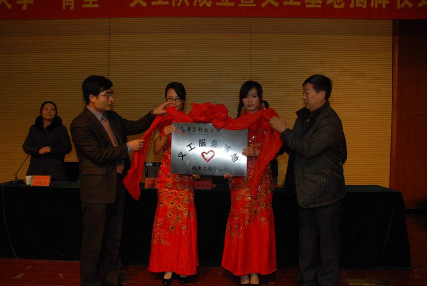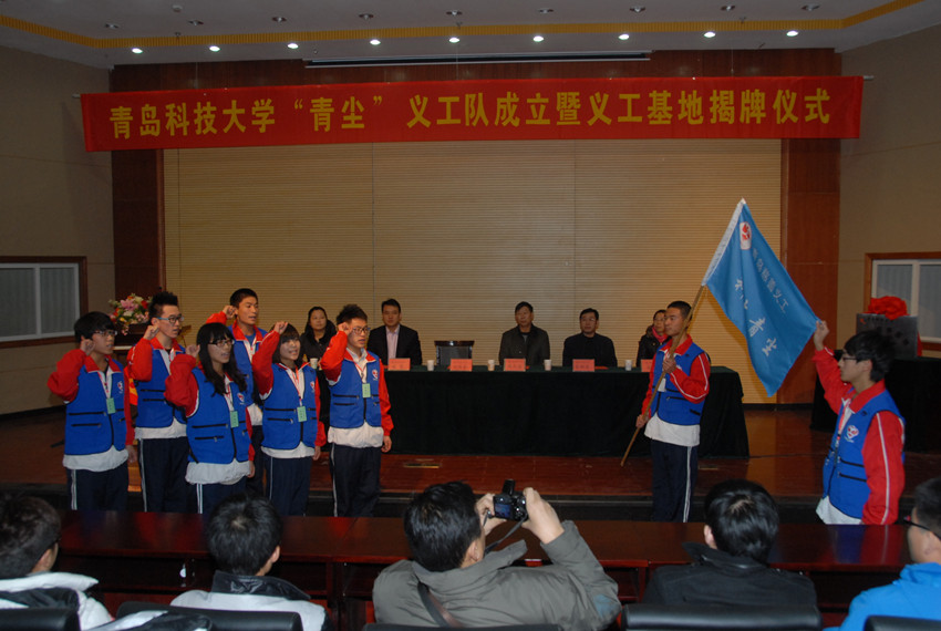 “青尘”义工队成立暨义工基地揭牌仪式在崂山校区第一报告厅举行。青岛市慈善总会宣传部部长侯文栋,校团委书记刘传华,青岛市金色儿童自闭症训练馆主任徐萍,机电 财神捕鱼
