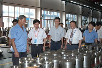 陈奎生教授在高培利等人陪同下考查了汽轮机中小件分厂、总装配分厂。