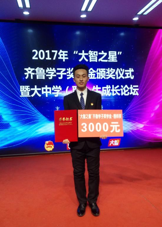 据悉,“大智之星”齐鲁学子奖学金由共青团山东省委、山东省学生联合会、大智教育集团于2016年共同发起,旨在选树和宣传一批可亲、可敬、可信、可学的优秀青年学生典型,发挥示范引领作用,引导广大青年学生坚定理想信念、练就过硬本领、勇于创新创造、矢志艰苦奋斗、锤炼高尚品格,勇做时代的弄潮儿,争做堪当复兴大任的时代新人。