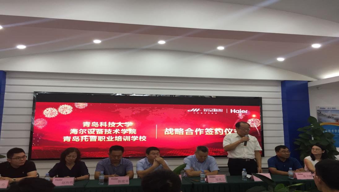院长邹兆云、青岛市大学生创业服务中心主任褚庆柱、青岛托普集团总经理王敏燕等共同出席签约仪式并致辞。
