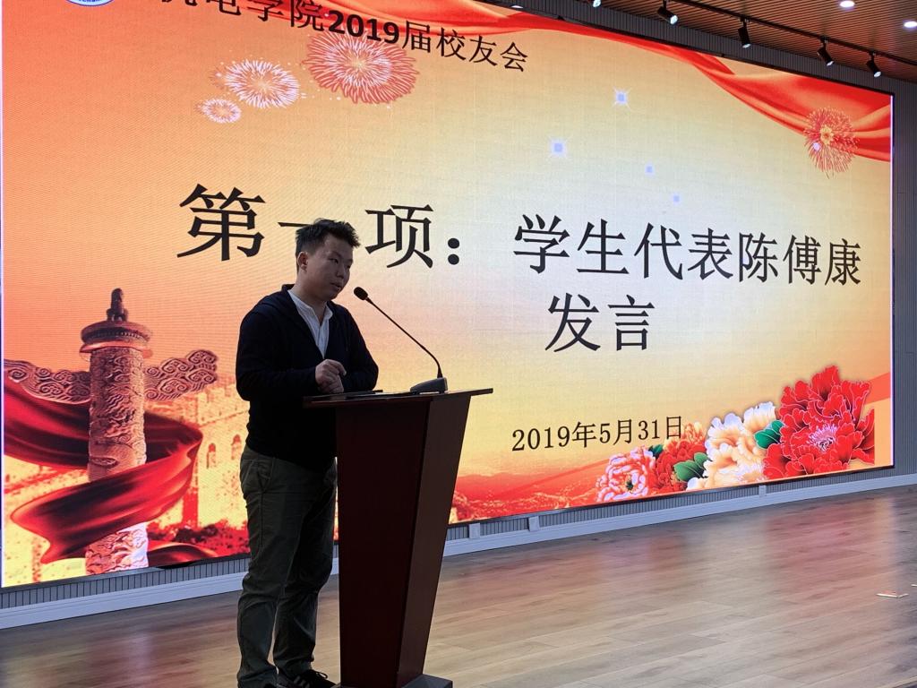 会上,2019届校友代表陈傅康同学上台发言,他表示在大学四年是最美好的时光,如今面临毕业,由学生角色转换成校友角色,就要做好校友工作,学会感恩母校,文明离校,维护 财神捕鱼