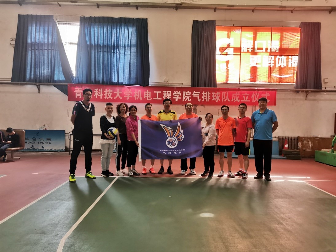 教职工气排球队成立暨授旗仪式。仪式结束后,气排球队组织了一场热身赛。