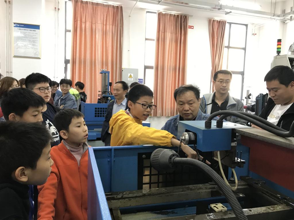 的概况。接着,机自系老师与小朋友们就科学知识的学习方面进行了交流。然后,小朋友们参观了机自系实验室和机器人实验室。李军英、蔡汉明等老师,在小朋友们的参观过程中,结合实验室的设备,就其中蕴含的科学道理和科学知识,给小朋友们进行了精彩讲解,把科普知识教育与实践结合起来,使小朋友们更容易理解,并激发了小朋友们努力学习科学知识的兴趣,树立了为实现美丽中国梦而奉献自己力量的远大理想。