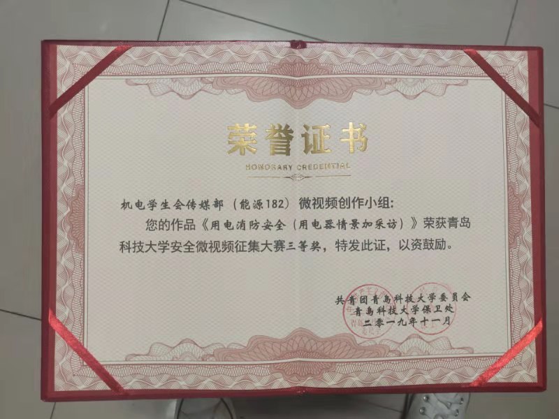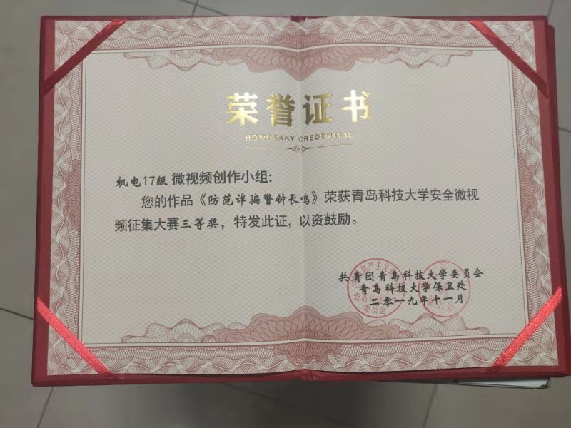 在此次征集活动中获得佳绩。其中,17级学生制作的《防范诈骗警钟长鸣》、机电学生会传媒部(能源182)制作的《用电消防安全(用电器情景加采访)》荣获三等奖,机电 财神捕鱼