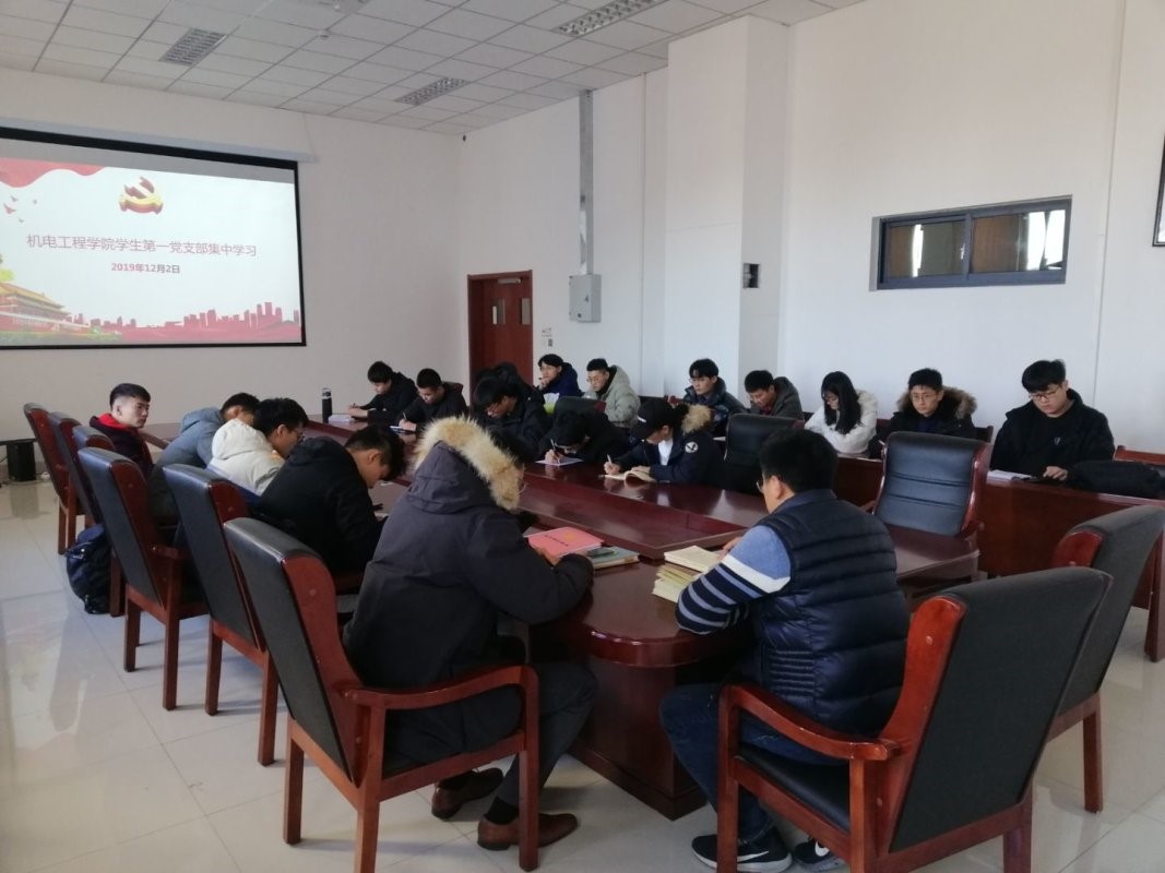 党委组织部《关于召开基层党支部组织生活会及2019年度党内评议评优工作的通知》要求,12月2日中午,本科生第一党支部在机电楼518会议室召开组织生活会前集中学习会。
