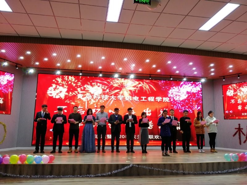 文艺汇演暨2020元旦联欢会在工业设计系师生表演的歌舞《卡路里》中拉开序幕。力学教研室的诗朗诵《七十年风雨路》歌颂了祖国70年的辉煌成就,高机系的《明天会更好》表达了机电全体老师对 财神捕鱼
